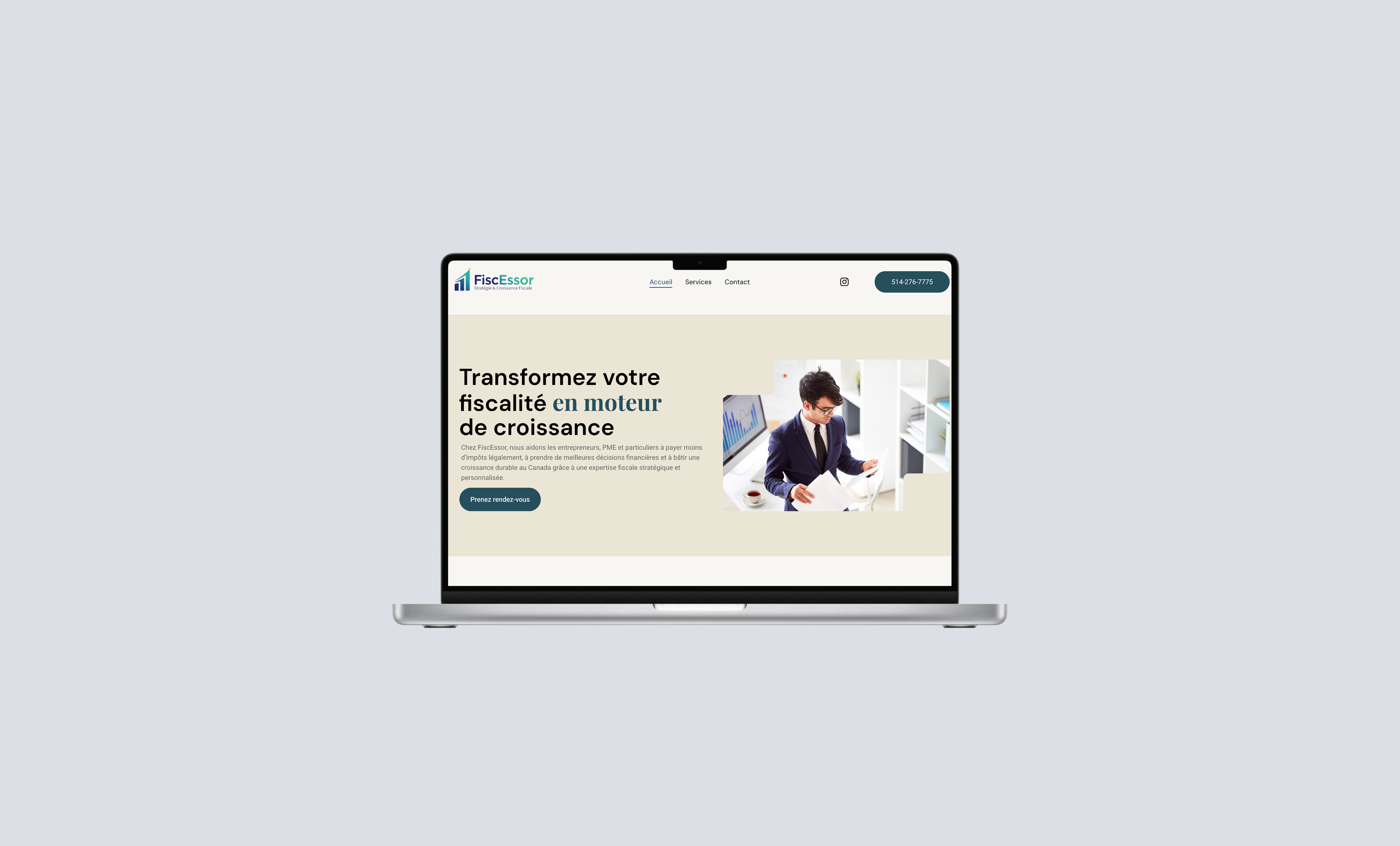 FiscEssor’s homepage is structured as a reassurance-first journey: a clear promise at the top, strategic value framing, a personalized approach to differentiate the service, and a strong “partner of confidence” section to reduce hesitation. The experience closes with a prominent dual CTA (services or appointment), supported by visible contact details and location—so visitors can act immediately once they’re convinced.